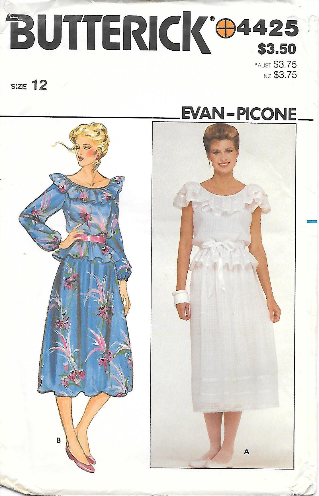 Close Out 1980s Butterick 4425 Ruffled Top And Skirt Sewing Etsy
